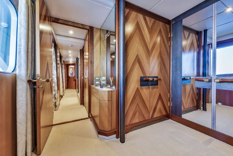 SHEERGOLD can accommodate 10 guests across four cabins. Her main cabin is full-beam and located on the main deck, with an additional double cabin and two twins.